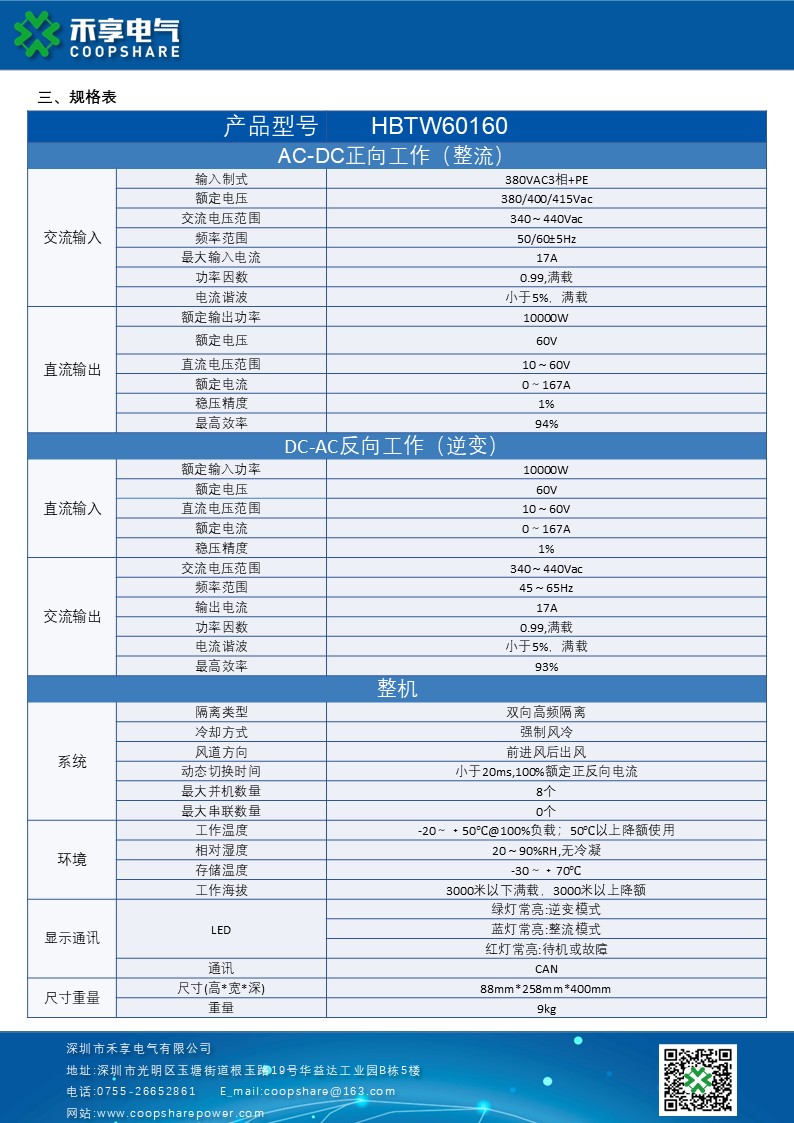 3.超宽的直流输出电压范围:10Vdc-60Vdc,满足各种充放电电压范围的需要;